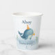 Make a splash at your child's birthday celebration with this charming whale-themed paper cup! Featuring a watercolor-style blue whale in a party hat and a playful noisemaker, this design brings joy and whimsy to any nautical or ocean-themed party.