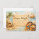 This pirate baby shower design features a whimsical storybook illustration with playful pirate children, tropical palms, treasure chests, and a vintage parchment map at the center. Inspired by classic children’s book art, the warm color palette and detailed scene create a fun, adventurous atmosphere without feeling cartoonish. Ideal for parents who love nautical themes, pirate adventures, and timeless illustrated styles, this design is fully customizable for your celebration details.