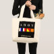 Ahoy, there! Here's your personalised bag for boating or cruising, the beach, or just all around town, with Ahoy spelled out in international maritime signal flags. Add your name, and you're ready to go!