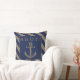 Ahoy! Nautical Anchor With Navy Blue & Burlap Stripes Cushion Throw Pillow