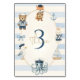 Set sail for cuteness with this Ahoy-themed nautical table number card! Designed with charming watercolor sea animals like a sailor bear, fox, bunny, octopus, and seagull on soft pastel blue stripes, it's perfect for organising your under-the-sea birthday celebration.