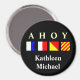 Ahoy spelled out in l flags... with the translation just above. If you're cruising soon, this magnet is the perfect "marker" for your cabin door! Personalised it with your first names or family name.