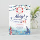 Ahoy sailor nautical boat blue red 1st birthday invitation