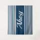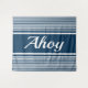 Ahoy text design with navy blue and white stripes decoration