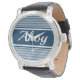 Ahoy text design with navy blue and white stripes decoration