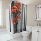 Red, orange, gold, and yellow ai flowers with silhouetted black tree trunk and branches and two or three falling flowers, all against contemporary vertical black and white stripes make this decorative customisable shower curtain striking and dramatic. You can customise it by changing or adding images, text or background colours to make it uniquely yours if you like. Look for coordinating customisable home decor and kitchen and dining products in our store.