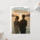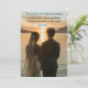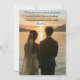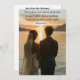 An AI-generated traditional wedding invitation of a realistic lady and her gentleman looking at the horizon on a late day (probably after their wedding), with a most romantic quote about true love by Antoine de Saint Exupéry.