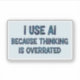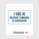 Make a statement with this sticker. Featuring the phrase "I Use AI Because Thinking is Overrated", it’s perfect for anyone who loves tech, AI, or just a good laugh. Stick it on your laptop, water bottle, notebook, or anywhere you want to show off your witty, low-effort charm.