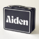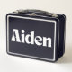Constructed from high-quality metal, this lunchbox is built to last, making it an ideal choice for a busy lifestyle. The sturdy construction can withstand the rigours of daily use, while the smooth finish and modern design elevate its overall appeal. The name Aiden is prominently displayed in a contemporary font that adds a touch of sophistication and personalisation, ensuring this lunchbox is as unique as its owner. Its retro-inspired charm, combined with a modern twist, makes it a must-have for anyone who loves stylish yet functional school supplies or office accessories.