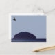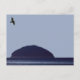 This postcard features a digital painting of Ailsa Craig, an uninhabited island in the Firth of Clyde, Scotland, UK, Europe, viewed from Girvan. A solitary gull flies over the little island, the plug of an old vocano. People once quarried granite there to make curling stones. It’s now a bird sanctuary.