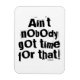 Funny slogan text design magnet with the phrase Ain't Nobody Got Time For That. Add additional text to give this design a personal touch.