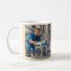 This illustration features an experienced air conditioning technician repairing a broken unit. Very happily, full of energy, and with a big smile this working is doing his job. Your coffee mug can be easily customised according to your needs.