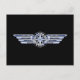 Air Pilot Chrome Like Wings Compass on Black Postcard