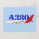 Airbus A380 Illustration with Bold Red Tail Design Postcard