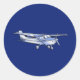 Aircraft Chrome Cessna Silhouette Flying on Blue Classic Round Sticker