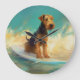 Immerse yourself in the playful world of canine adventure with this captivating painting. A spirited dog takes to the waves, skilfully riding the surf on a sun-kissed beach. The vibrant artwork beautifully captures the essence of beachside excitement as the dog fearlessly rides the waves, embodying the spirit of fun and freedom. With a harmonious blend of colours and dynamic brushstrokes, this piece brings the joy of surfing and the beach right into your space, making it a delightful addition to any art collection.
