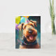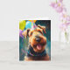 Airedale dog with birthday hat and balloons card