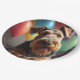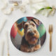 Airedale dog with cake and balloons paper plate