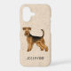 Destei's original cartoon illustration of a cute Airedale Terrier breed dog. The background colour is beige with a decorative texture. The background colour can be changed to any other colour and the texture can be removed, if so wished. There is also a personalizable text area for a name or other custom text.