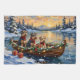 Bring bold, spirited charm to your holiday season with this handsome Airedale Terrier Christmas design! This magical scene features three proud, wire-coated Airedale Terriers sitting attentively in a cozy wooden boat, gently floating on a serene snowy lake at sunset. The boat is beautifully adorned with glowing Christmas string lights and fragrant pine garlands, while the dogs wear festive scarves. They are surrounded by colorful wrapped presents and cheerful holly branches. Soft snowflakes gently fall, and the shimmering reflection of the lights on the water creates a truly magical winter holiday atmosphere. This design is a perfect Christmas gift for any Airedale Terrier owner, dog lover, or admirer of festive and unique terrier art, capturing the serene joy of the season.