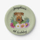 Airedale Terrier Colourful Flowers Happy Birthday Paper Plate