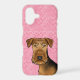 Destei's original cartoon illustration of a cute Airedale Terrier breed dog on a pink background colour with a pattern of hearts shapes.