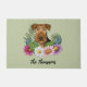 Airedale Terrier Dog And Colourful Flowers Green Doormat