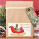 On these pretty Holiday decorative stickers, an Airedale Terrier Dog sits in a pretty red and gold decorative sleigh. Beside the dog sits gift packages tied with colourful bows. The gold script text at the right says "MERRY CHRISTMAS" and your custom text is in red. Perfect for your Christmas correspondence or gift packages! More terrier images, as well as other breeds, at Dog Village.