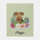 Airedale Terrier Dog Colourful Flowers And Name Fleece Blanket