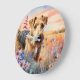 A lovely wall clock for the lover of Airedale Terriers and dog lover's alike. This dog is in a colorful botanical meadow.