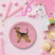 Airedale Terrier Dog Love With Pink Heart Pattern Paper Plate