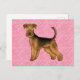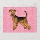 Airedale Terrier Dog Love With Pink Heart Pattern Postcard
