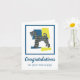 Airedale Terrier dog silhouette in yellow blue and black modern grid lines pattern. Congratulations on your new puppy outside and funny message inside can be changed to anything you want. Perfect present for the king of terriers lover.