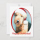 Happy Airedale Terrier is wearing his Santa Hat and ready to help you celebrate the holidays - Aire Santa says, Airey Christmas! Find him on T-shirts, sweatshirts, cups, mugs, greeting cards plus more items to wear or display.