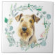 Airedale Terrier Watercolor Wreath Ceramic Tile