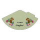 Destei's original cartoon illustration of an adorable Airedale Terrier breed dog's head close-up surrounded by colourful summer wildflowers. There is a blush pink flower, a purple flower, a dark pink flower and a white daisy flower together with some green leaves and branches. The background colour is green with a light polka dot pattern. The background colour can be changed to any other colour and the polka dot pattern can be removed, if so wished. There are also two personalizable text areas.