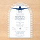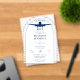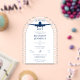Your favourite pilot getting ready to soar with the eagles? Celebrate your graduate's accomplishment in true aviation style with this blue, grey and white graduation party invitation design by Holiday Hearts Designs. The design features a background of white stripes on clear with a centre arched white panel with a grey border and a dark blue aeroplane above your grad's class year.