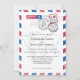 Distressed Airmail Letter Travel Design for your Destination Wedding. Two hearts are placed on the location of the couple's home. These locations are Wisconsin and Rio de Janeiro Brazil and wedding location Florida. Perfect for couples that growing up miles apart. The stamp shows the location of where the wedding will be held. If you need different locations or a colour change or cards to go along with this theme please email paula@labellarue.com