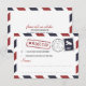 Airmail Inspired RSVP Card in Red and Navy. Faux Stamp and Postage Markings for a Travel Themed Wedding. Coordinates with 'Boarding Pass' Invitation and 'Airmail' Save the Date.