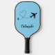 Take your love for travel onto the court with this personalized pickleball paddle featuring a sleek black airplane silhouette creating a heart-shaped contrail against an icy blue background. Customize it with your favorite destination to turn every game into a reminder of the places and memories that matter most.