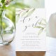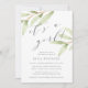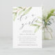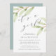 Simple and elegant baby shower invitation features "it's a girl" in chic grey modern calligraphy lettering, flanked by sheer green watercolor foliage. Personalise with your baby shower details beneath. Baby shower invitations reverse to solid pale sage green. Customise the paper type or shape to make this elegant design your own.