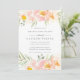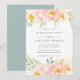 Elegant watercolor floral graduation party invitation frames your graduation celebration details with a border of sheer pastel watercolor flowers and foliage in pale, cool shades of blush pink, peach and spring green.