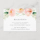 Designed to coordinate with our Airy Floral wedding collection, this lush floral reception card features a spray of pastel watercolor flowers and leaves in peach and mint green, topping your reception details, timing and address.