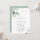 This airy greenery and gold leaf wedding invitation card is perfect for a modern wedding. The elegant botanical design features light and airy watercolor eucalyptus accented with whimsical gold glitter leaves.