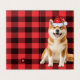Akita Christmas Dog with Holiday Red Buffalo Plaid