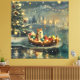 Set sail into the magic of the holiday season with this beautifully detailed illustration, showcasing a proud dog sitting in a festively decorated boat, gliding across a serene Christmas lake. The twinkling lights from nearby pine trees reflect off the water, casting a warm, festive glow that enhances the cosy ambiance. Ornaments dangle from the boat's sides, while glowing lanterns light the way, creating a scene that captures the true essence of Christmas warmth and joy. This nostalgic artwork brings a touch of holiday magic to any space, perfect for those who cherish the spirit of the season.