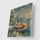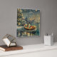 Set sail into the magic of the holiday season with this beautifully detailed illustration, showcasing a proud dog sitting in a festively decorated boat, gliding across a serene Christmas lake. The twinkling lights from nearby pine trees reflect off the water, casting a warm, festive glow that enhances the cosy ambiance. Ornaments dangle from the boat's sides, while glowing lanterns light the way, creating a scene that captures the true essence of Christmas warmth and joy. This nostalgic artwork brings a touch of holiday magic to any space, perfect for those who cherish the spirit of the season.