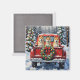 Celebrate the holiday season with this majestic Akita Christmas design! This dignified scene features three powerful, thick-coated Akitas sitting alertly in the back of a classic red pickup truck, perfectly suited for the beautiful snowy winter forest setting. The vintage truck is adorned with a vibrant Christmas wreath, twinkling with red and gold ornaments and warm, glowing lights. Abundant snowflakes fall around the scene, truly creating a winter wonderland. With a decorated Christmas tree in the background, this design is perfect for capturing the joyful spirit of the holidays and makes an excellent Christmas gift for any Akita owner, dog lover, or admirer of festive and magnificent dog art.