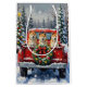 Celebrate the holiday season with this majestic Akita Christmas design! This dignified scene features three powerful, thick-coated Akitas sitting alertly in the back of a classic red pickup truck, perfectly suited for the beautiful snowy winter forest setting. The vintage truck is adorned with a vibrant Christmas wreath, twinkling with red and gold ornaments and warm, glowing lights. Abundant snowflakes fall around the scene, truly creating a winter wonderland. With a decorated Christmas tree in the background, this design is perfect for capturing the joyful spirit of the holidays and makes an excellent Christmas gift for any Akita owner, dog lover, or admirer of festive and magnificent dog art.