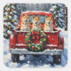 Akita Christmas Red Truck Holiday Square Sticker